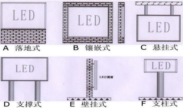 Note: The above are six commonly used installation methods in the installation of display screens. For indoor display screens, four installation methods are generally adopted: A\B\C\D, and the above methods can be used for outdoor display screens.